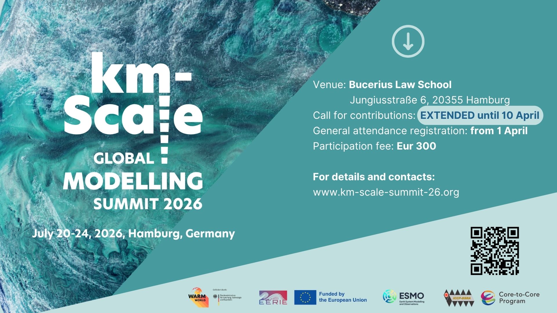 The summit, taking place from 20–24 July 2026 in Hamburg, brings together the international community working on kilometre-scale Earth system modelling, covering advances in process understanding, model development, high-performance computing, and emerging AI-based approaches.